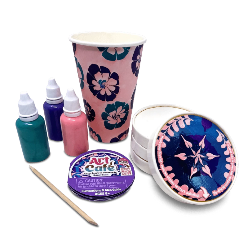Create vibrant, latte-inspired paintings with Art Café from Tree Town Toys! These fun, portable sets let you pour and paint 4 unique artworks using a simple “pour & pull” technique, inspired by latte art and trendy designer cookies. Just pour colorful paint onto the no-drip canvas using fine-tip bottles, then pull a pick through the patterns to create mesmerizing, swirling designs. Perfect for coffee shop vibes at home, these kits offer a creative experience that’s as delightful to make as it is to admire!