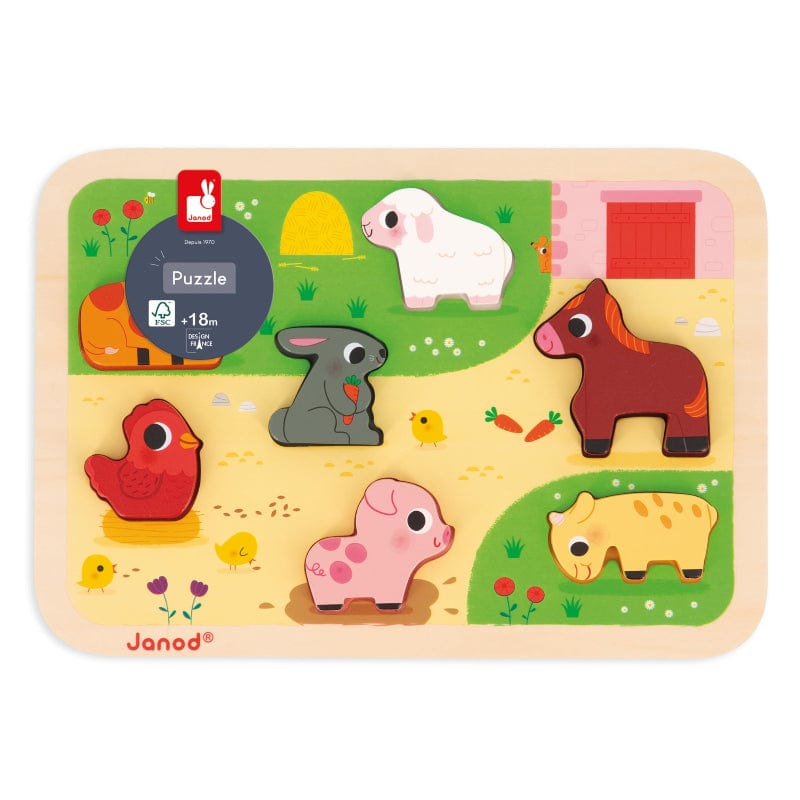 Wooden puzzle on the topic of the Farm. 7 animals in 3D, a thickness of 1.5 cm/0.6 in. Discover the exciting world of zoo animals! Your child will have fun putting the animals in the right place and playing with the pieces that stand up just like real figures. Your child will have fun as they develop their motor skills and imagination.