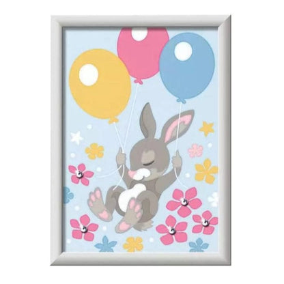 Help kids relax and get creative with this fun and satisfying paint-by-number kit, complete with everything needed to make and display their very own masterpiece! This adorable “Flying Bunny” is sure to lift their spirits, and even includes some sparkly gems! Success is simple, with color-outlined sections and matching, odorless acrylic paints to ensure picture-perfect results. Finish in about 4 hours, let dry, then use the included frame to proudly display your budding artist’s talent!
