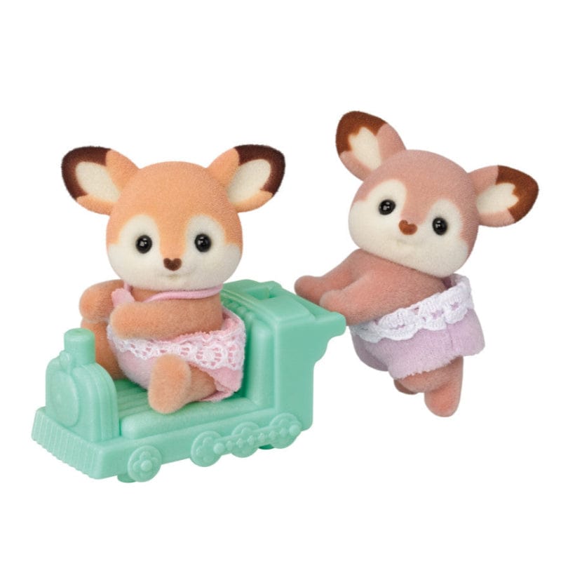 The Deer family have adorable big ears. This set contains the Deer twins with a pushcar. The figures have different colors and ear patterns! One twin can sit in the pushcar. The pushcar can be connected with the pushcars from other twin sets.