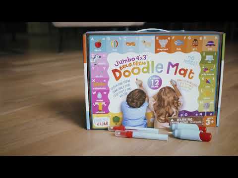 Dream and draw! All it takes is your creativity and some water!NO MESS. This jumbo Aqua Draw Doodle Mat is a whopping 4ft x 3ft. That means more art on the mat and less on the floor. Plus, with 2 brush pens, 2 markers, and 8 art sponges, there are tons of ways to create your masterpiece! Just add water to your art tools and watch as you magically create a colorful stroke on the mat. Once you've filled your entire surface with art, just let it dry and you're ready to go again! Doodle til you drop! Can't think of something to draw? Check out the colorful border where you can learn the alphabet and spark your imagination with new ideas. What more could a little artist need?