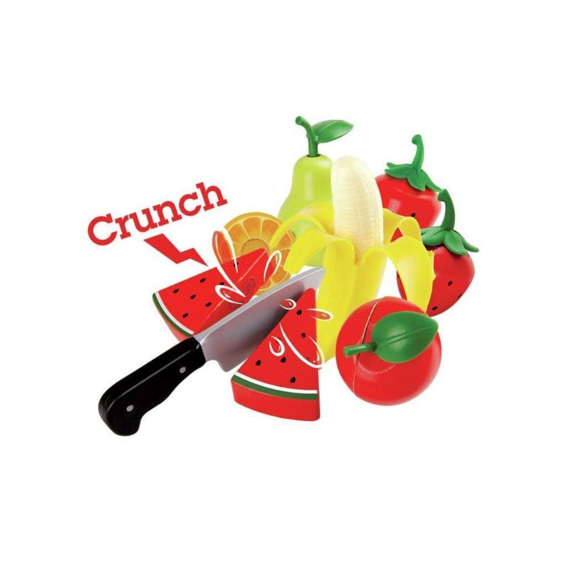 Get used to eating healthily with this cute fruit set. Easy to cut self-stick fruits will introduce your little chef to different food preparation techniques. Small but durable self-stick tabs join the fruits, allowing them to be easily “cut” with the child safe knife and joined again. Create the perfect recipe, the fruit playset items can be paired with other pretend food toy sets by Hape.