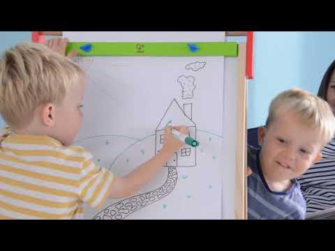 This easel is double-sided, with easy access to art supplies, refilling paper roll, and is fully height adjustable! It’s potential grows as your child does, and with its sturdy and classic design will provide years of play. Suitable to use with chalk, dry erase markers, or any sort of drawing crayon, paint. Easy water resistant surfaces make cleaning a breeze, so that your child can get back to what matters most: their creativity!