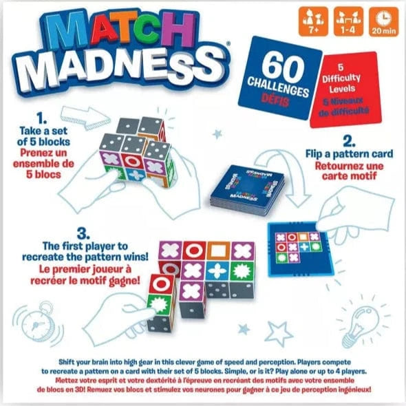 Shift your brain into a higher gear in this clever matching block game; test your dexterity and pattern recognition skills turning blocks over as quickly as possible. Players race to arrange a set of 5 blocks to match a pattern shown on a card. The first player to succeed grabs the card and the player with the most cards wins. Plus, discover an additional level of excitement with 60 extra bonus puzzles available by scanning the QR code inside the box