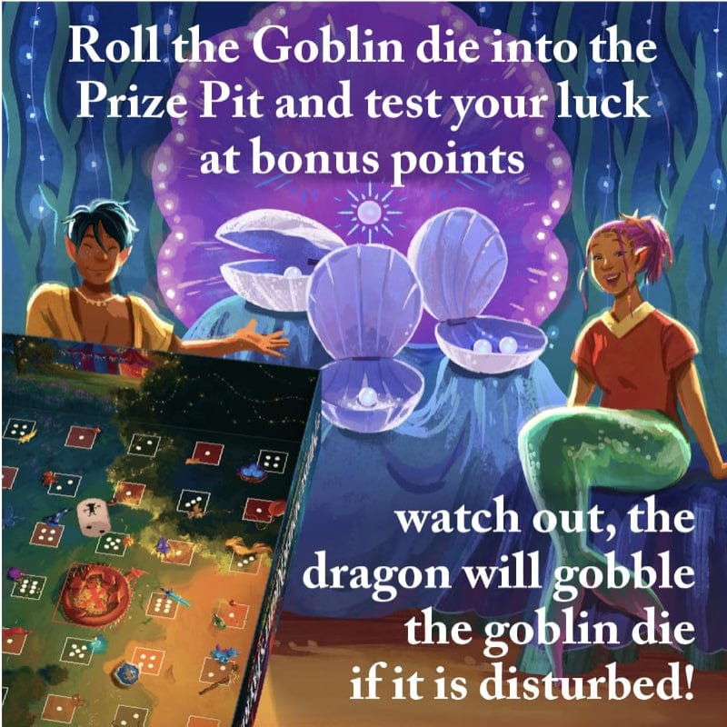 • Includes 40 Dice! 30 Player Dice (5 of each color), 9 Fairy Dice and 1 Goblin die!