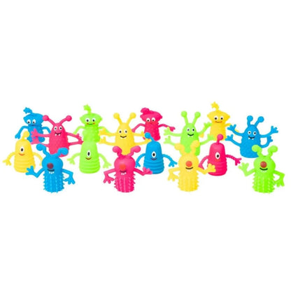 Monsters don’t have to be scary. Toysmith’s Monster Finger Puppets come in assorted styles taking on varying monster shapes and fit on a human fingertip. Available in pink, green, blue, and yellow. Each finger puppet is made of silicone and has a friendly monster face painted on it. Some puppets have multiple arms, others have multiple fingers. Put one on each fingertip and let the imagination run wild!