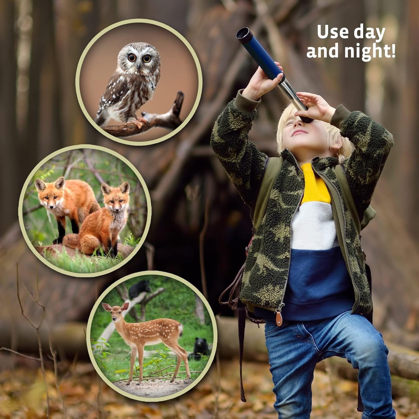Explore the moon's craters, constellations, and wildlife with this playful telescope featuring 12x magnification, quality optics, and a soft eye-piece cover for comfort. Perfect for young researchers and backyard adventures!