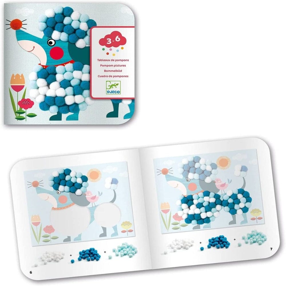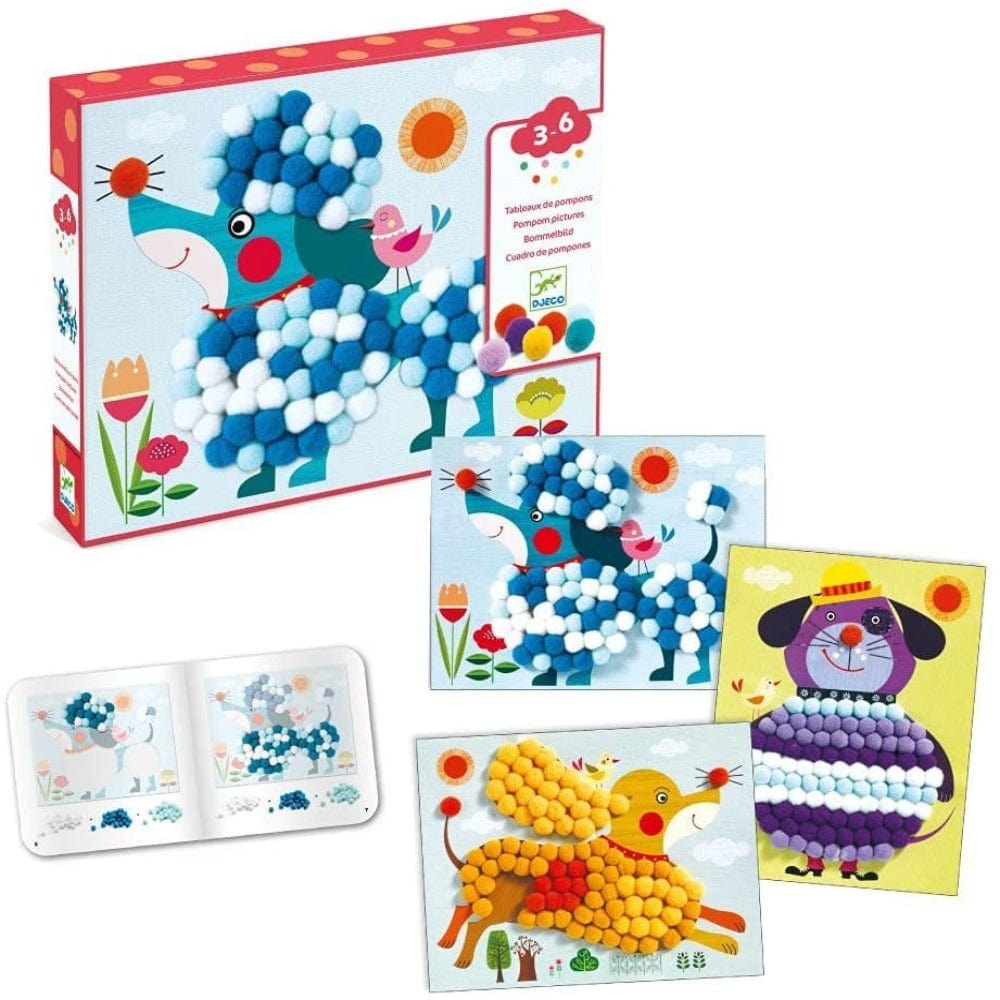 Hip hip hooray for pom poms! Soft and round and squishy but firm, they make an ideal craft material. In this kit, pom poms are central to the fun. Picture boards are printed with fun animal images and space for kids to peel and stick decorative pom poms into place. Includes 3 picture boards and hundreds of colorful poms.