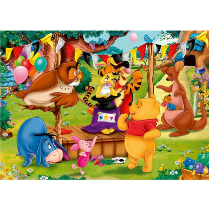 Enjoy the magic of teaching positive puzzling fun! Our 60-piece floor puzzle features the Hundred Acre Wood full of joyful friends gathered for a special show. Oh my! Who is bouncy Tigger pulling out of the hat? Join Piglet, Roo, Eeyore, Rabbit, Owl, Kanga and of course, Winnie the Pooh! He’s the chubby little cubby all stuffed with fluff — that willy nilly silly old bear we love. A perfect puzzle for any young fan of A. A. Milne’s classic tale!