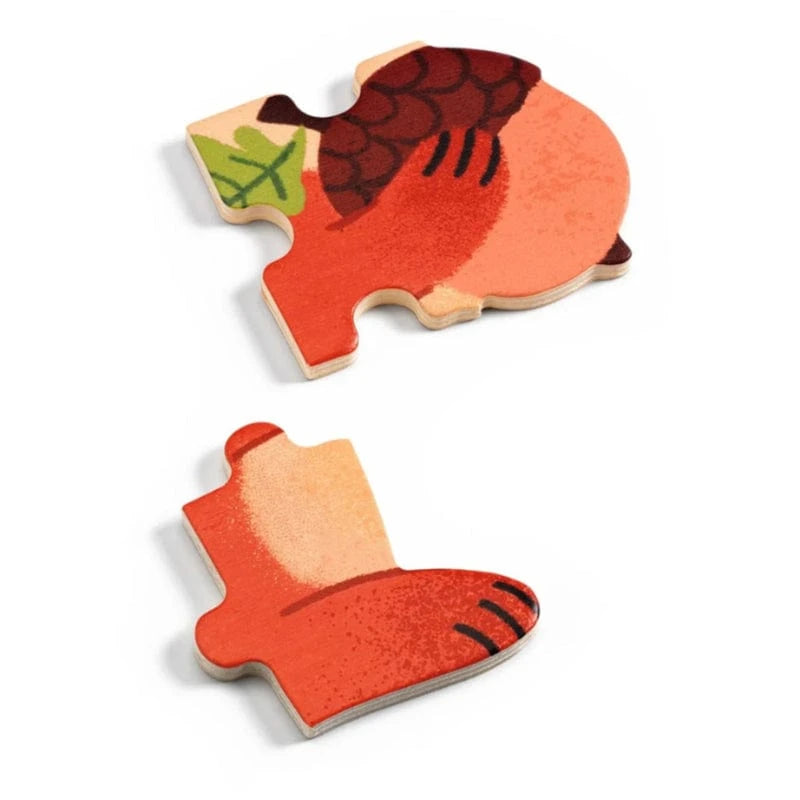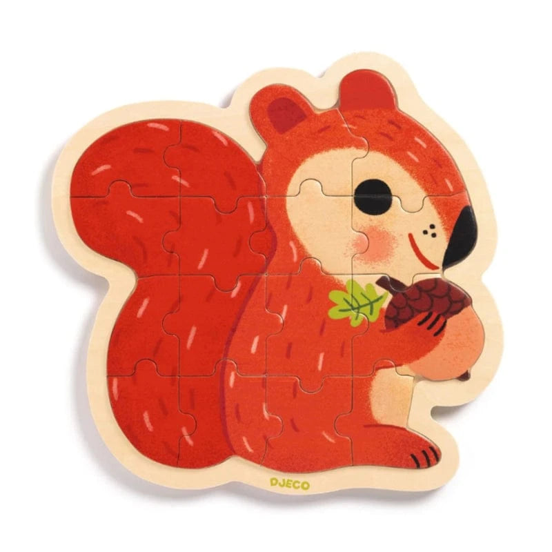 Inside the animal-shaped wooden frame, recreate the picture to discover a lovely little squirrel.