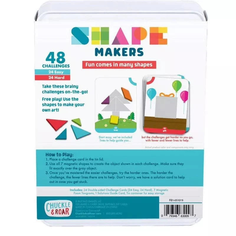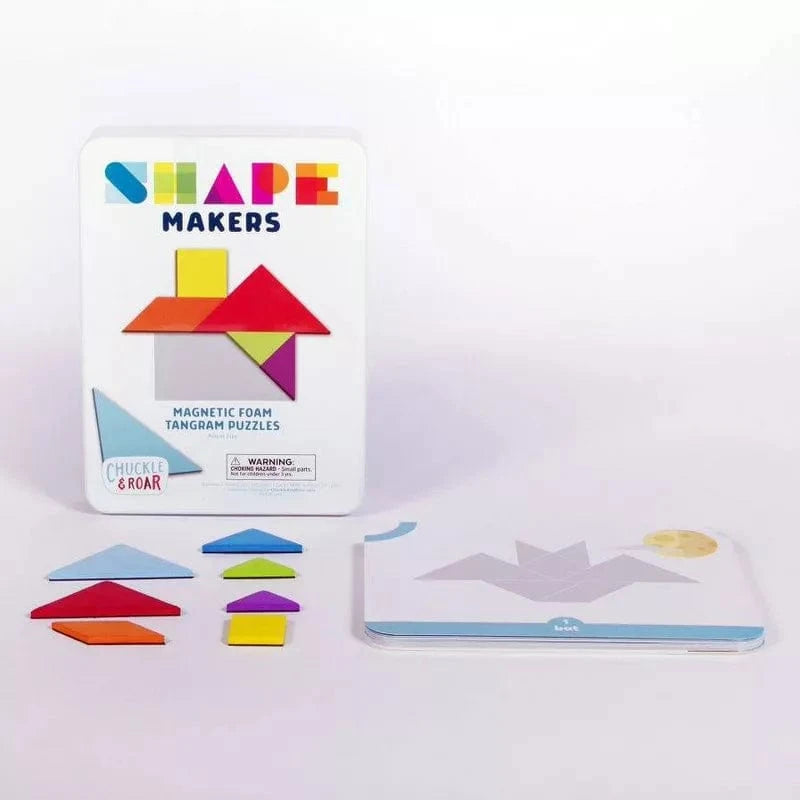 Learn shapes and logic on the go! Learn shapes and build logic and problem-solving skills with this fresh take on tangrams. Simply place all the magnetic shapes inside the card to complete the challenge. You can also tap into your creative side with free play, make whatever designs you want!