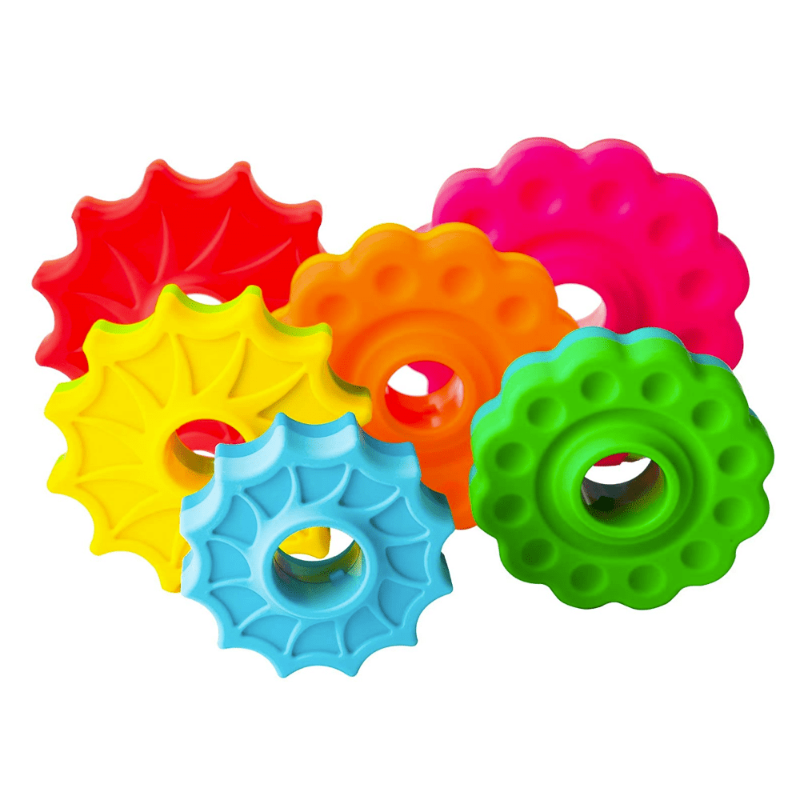 It's a stacking toy with a spin - literally! Drop the vibrant 6 star-burst discs of the SpinAgain onto the threaded corkscrew pole and go ooooh as they spin fast and smooth to settle onto the reversible base. Choosing how to set the base is half the fun for your toddler. Pick either a wobble base or turn it over for a solid seat. Each disc is dual-colored, and from largest to smallest, they form a dynamic rainbow utilizing fun shades like magenta, lime, and teal, and your more traditional shades of lemon, red, and sky blue.