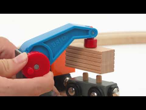 Gear up for your first BRIO World adventure with the 36028 Starter Lift & Load Set. This 14-piece railway set features classic BRIO play with focus on lifting and loading cargo between trains, cranes and trucks. Place the wooden cargo load on the back of the orange cargo train and take a lap around the iconic BRIO wooden tracks. Then use the magnet on the low level crane to pick up the cargo, swing it around to be loaded onto the blue truck and off you go.