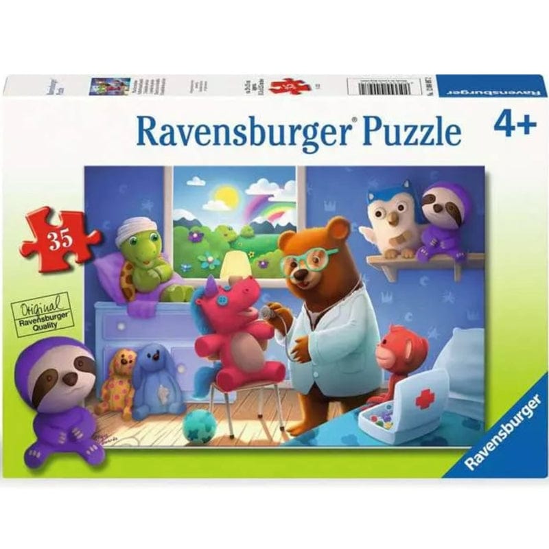 Let your child help Doctor Bear heal all the boo boos in our colorful “Stuffed Animal Hospital” puzzle and impart a lesson in compassion! Poor Turtle hit his head, while Owl got poked with a stick. Bunny needs his stuffing put back, but will be good as new with just a few stitches. Jigsaw puzzles help develop hand-eye coordination, fine motor skills and problem-solving through repeated practice while delivering a good dose of healthy fun!