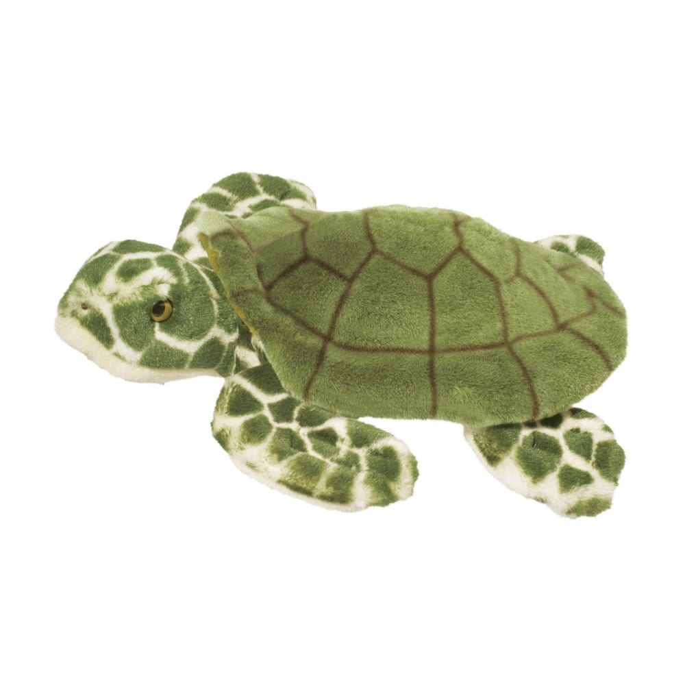 Swimming gracefully through the turquoise waters of tropical seas, Toti the Sea Turtle stuffed animal is a sight to behold! This endangered species feeds on underwater sea grasses and can migrate long distances thanks to its strong flippers. We’ve selected quality plush materials and resilient polyester fill to make Toti a huggable friend who’s ready for a lifetime of make believe adventures. He sports a realistic pattern of handsome spots over his body. Airbrushed details accent his green shell, and striking, gold colored eyes make it seem as if Toti is gazing right back at you! Surprise a budding conservationist with our lifelike rendition of the celebrated Sea Turtle!